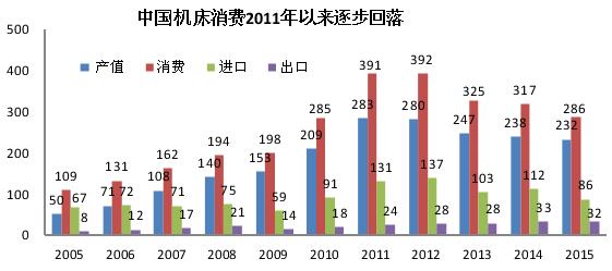 從 201 5 年中國(guo)機床市場消費額(é) 286 億美元,同比下降(jiàng) 10 %。 如下表(biao)所示:( 單位:億美元(yuan))