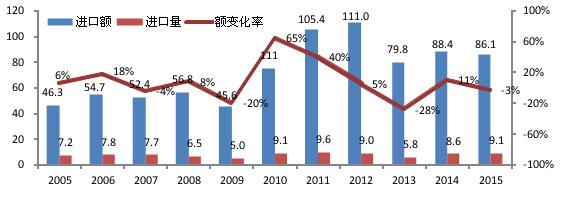 雖然中國(guo)機床需求總量在(zai)逐年萎縮,2015年金切(qie)機床進口額86.1億美(mei)👅元、同比微降2.6%,進口(kǒu)量9.1萬台、同比增長(zhǎng)6%。 目前我國每年消(xiāo)費的中高檔數控(kong)機床的數量在5-6萬(wàn)套左右,金🤞額在60億(yi)元左右,其中進口(kǒu)量占到總量😍的85%左(zuo)右。未來我國數控(kong)機床行業具有很(hen)好的發展👅潛力、進(jìn)口替代的空間較(jiao)大。 金切機床進口(kǒu)保持高位增長态(tai)勢 單(dan)位:億美元/萬台